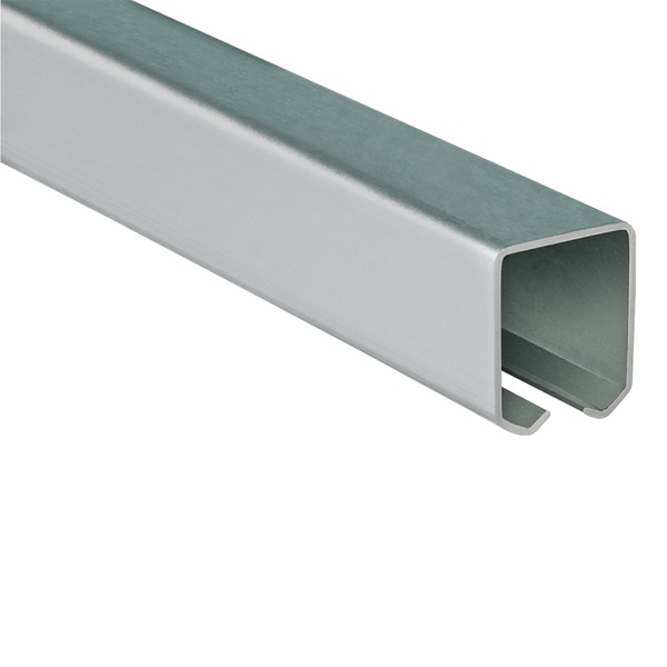 Heavy‑duty galvanized U‑channel overhead track, supplied as a 3.0 m length. Formed from robust steel with a 2.0 mm section thickness, engineered to run 55 mm hanging rollers (rollers rated 300 kg per pair).